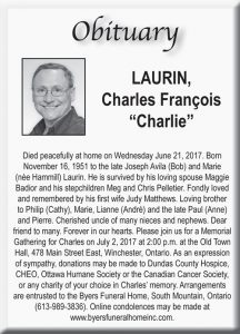 Home » Obituary – Laurin, Charles François Charlie » Obit – Laurin _28. June 2017.indd