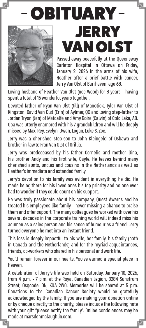 Posted by Chesterville Record | Jan 14, 2026 | Obituaries | 0 |